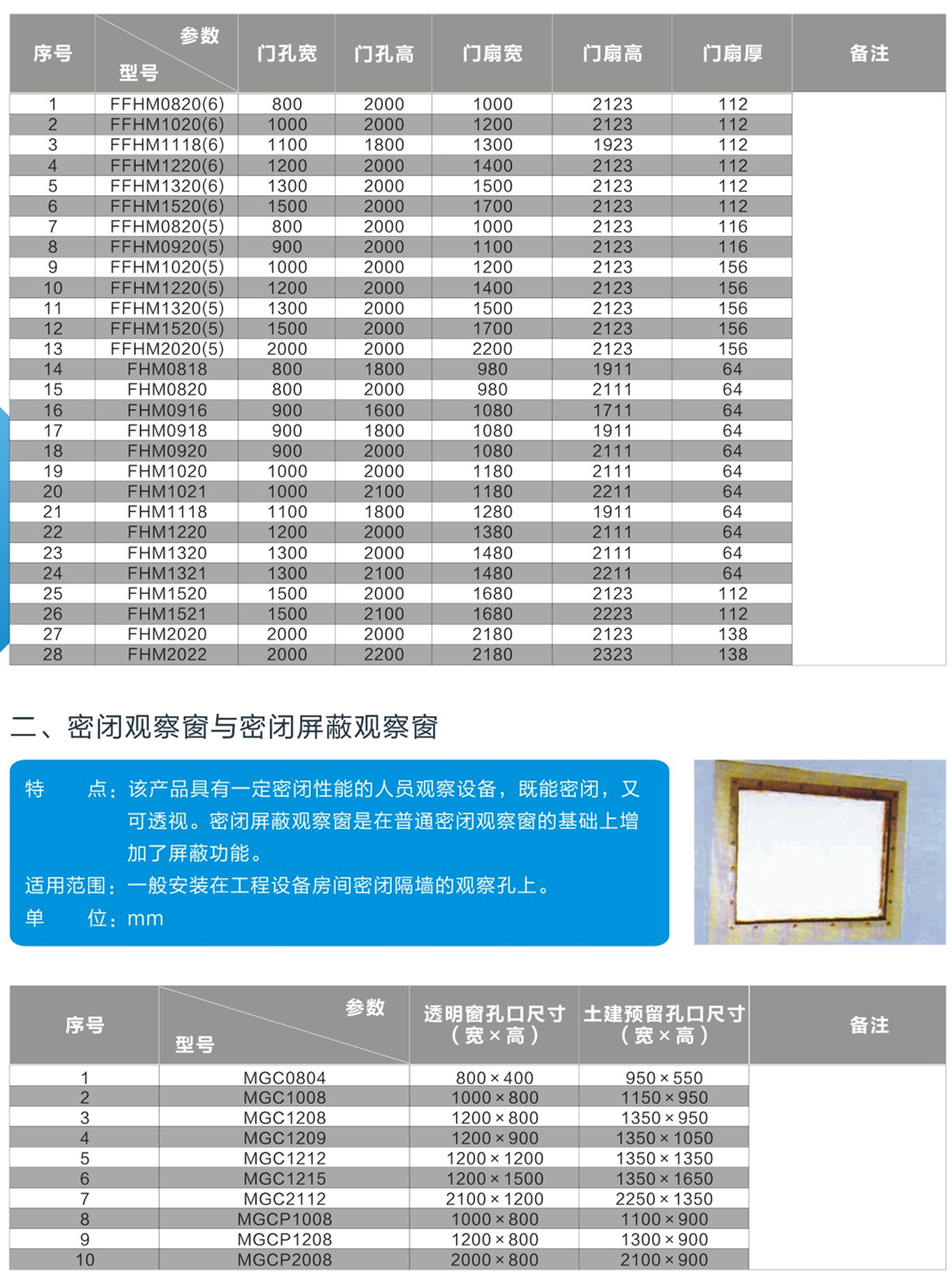 防火门、密闭门、密闭观察窗